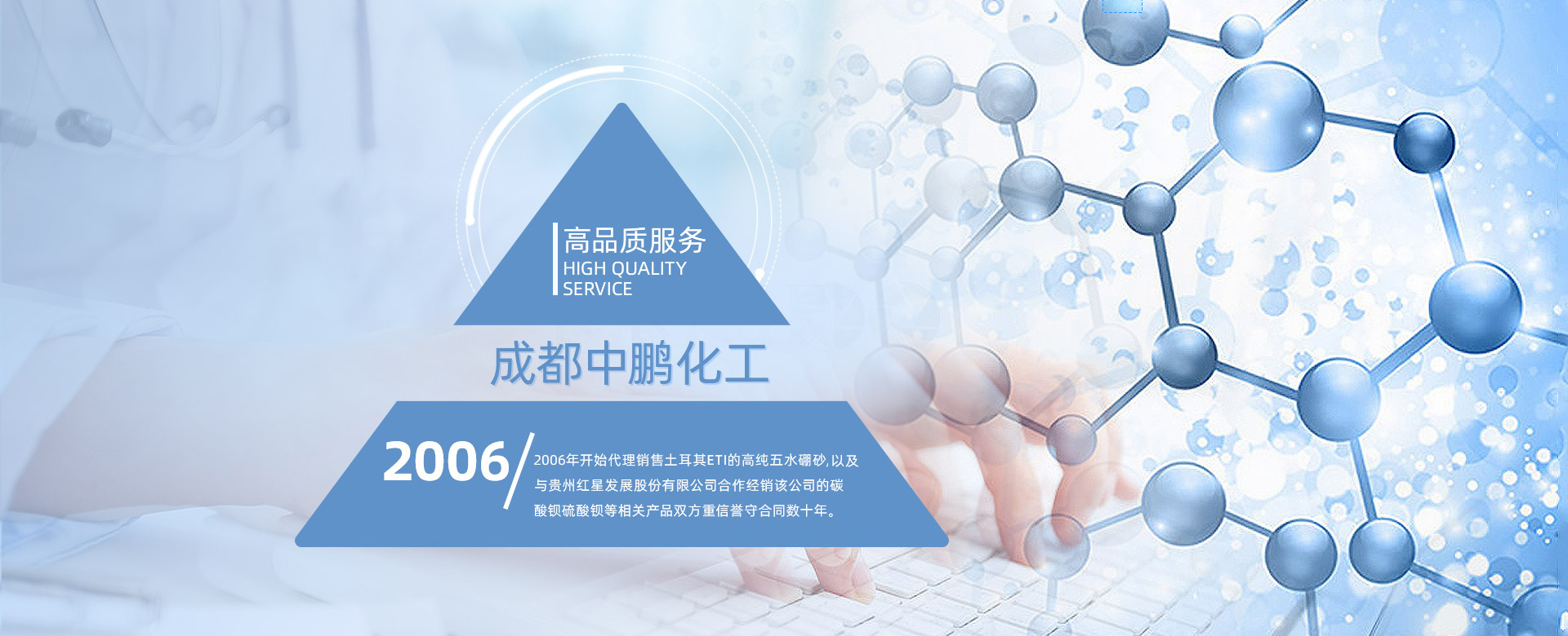 成都中鵬化工有限公司成立于2001年,位于成都市新都區(qū)木蘭木名商塑化城2棟11號(hào),公司成立16年以來(lái),一直堅(jiān)持為客戶提供各種基礎(chǔ)化工原料的產(chǎn)品。我公司長(zhǎng)期對(duì)于玻璃、陶瓷、電鍍、洗滌、“硼砂”、“碳酸鋇”、“氯化鋅”、“氯化鉀”、“硫酸鋅”等基礎(chǔ)化工原料的開發(fā)供應(yīng)。 公司現(xiàn)在員工上百人,在全國(guó)擁有多個(gè)營(yíng)銷體系和完善的售后服務(wù)體系,長(zhǎng)期以來(lái),通過(guò)為客戶提供各種基礎(chǔ)化工原料的產(chǎn)品,形成了良好的合作關(guān)系...